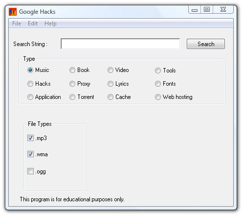 Le champ de recherche de Google ne vous suffit plus ? Vous voulez rechercher toute sorte de chose plus rapidement ? Qu’il s’agisse de musique, de livres, de vidéos, de paroles de chansons et de bien d’autres choses, Google Hacks est là. Ce petit logiciel vous permettra de faire des recherches plus poussées sans connaissances particulières. Google Hacks est sous license GNU et est actuellement à sa version 1.6.