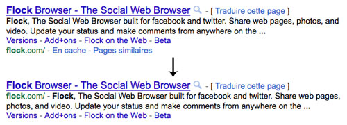Google : URL remontée dans le snippet & liens associés supprimés