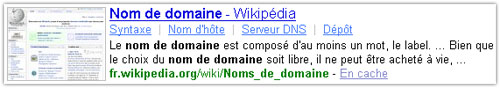 Yahoo affiche le plan des articles de Wikipedia dans les SERPS